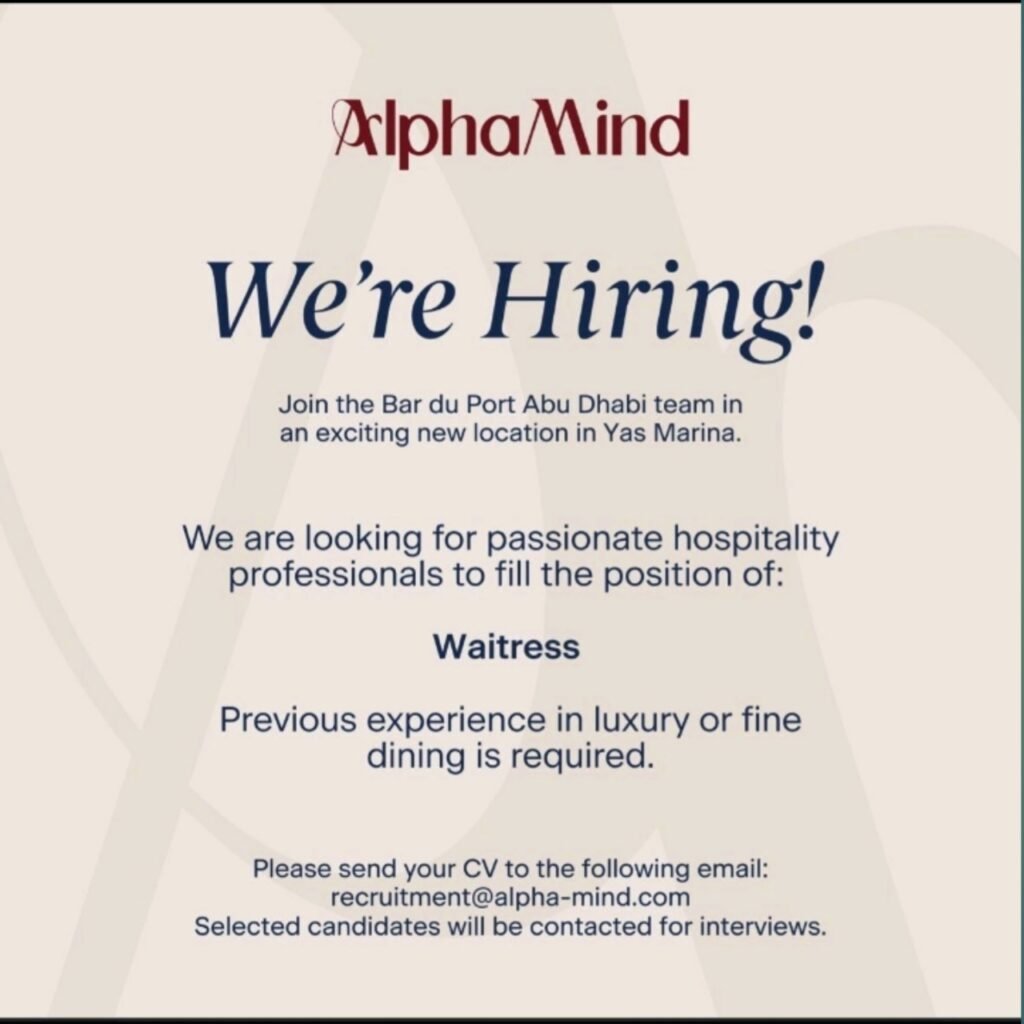 Trending Keywords for SEO: waitress jobs Abu Dhabi, luxury dining careers UAE, fine dining waitress jobs Yas Island, hospitality jobs Abu Dhabi, Bar du Port careers, hotel jobs Abu Dhabi, restaurant staff recruitment Abu Dhabi, Yas Marina jobs, AlphaMind recruitment, five-star hotel careers UAE.